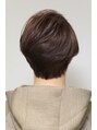 柔らかめの髪質を活かしてマニッシュな印象を出すために全体的に長めに設定。長さは、目と耳にかかるくらいのミディアムスタイル。トップの動きを出せるようしっかりレイヤーを入れました。