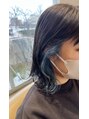 ブルーブラック×水色のインナーカラー 顔まわりにインナーが入っていることでお顔を華やかに、明るい印象にしてくれます!ブリーチすることでより綺麗に発色し、色味の幅も広がります!