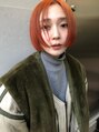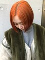 前上りのボブに黄色ベースのオレンジ。前上りのラインが可愛い◎ブリーチ1回から作れるミニボブです!