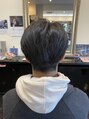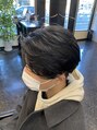 サイドは短めのツーブロックにしトップはやや短めに全体的にボリューム調整しながら適度な毛流れをつくりセンター分けのマッシュスタイルに仕上げました