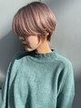 大人かわいい前下がりのショートボブはシャープに切ったライン、襟足をしめてスッキリ見せたりと、メリハリを効かせて絶妙なバランスに!カラーはブリーチ後くすみ感のあるピンク、レッド系ベージュでつや感、質感をプラスして大人見えに!
