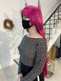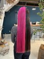 左右でカラーをはっきり分けたツートンカラーです!ブリーチしている方は蛍光ピンクで鮮やかな色となっております。