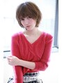 マッシュベースで小顔にカットし、パーマで髪の毛に柔らかい曲線がつくようにニュアンスカールをつけたふんわりレイヤーショートスタイル。