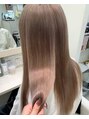 大人気カラー☆ミルクティーベージュブリーチ回数は2回から3回ほど必要なカラーになっています!柔らかい色味がとっても可愛いです♪ブリーチによってダメージがあるので、トリートメントでしっかり補修をして艶感を出しています!