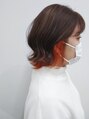 インナーをブリーチしてオレンジに。表面はアッシュ系で暗めに。