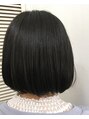 パッツンラインの重めボブスタイルです。カラーはダークブルー系で暗いけど色が入ってる感じです☆不動の人気のボブスタイル!ぜひお試しください(^^)