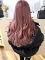 ブリーチ2回ほどしてる髪に薄めにピンクを入れてます。ほんのりベージュを混ぜているので自然なハイトーンピンクに。