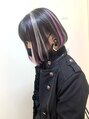 髪型は前下がりラインのボブにカット。全体的にメッシュのデザインになるようにエクステをつけました◎シルバー、ホワイト、ラベンダーの3色を使用してます♪
