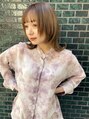 マッシュウルフベースの外ハネスタイル。表面には少しレイヤーを入れ、くびれる様に。カラーは暗めのアッシュベージュ。シースルーバングとおくれ髪で小顔感アップ。