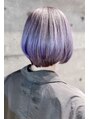 カットベースはナチュラルなショートボブ。ブリーチ後にペールラベンダー、そして毛先には更に特殊カラー(塩基性カラー)でブルーバイオレットをランダムにオン!一味違ったペールカラーが可愛い!綾瀬クレドTEL0356733177 駅近 綾瀬 亀有 北千住 金町