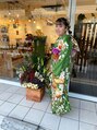 待ちに待った成人式♪笑顔がとってもキュートなお嬢様♪二十歳の美しさが際立つ豪華なグリーンのお振袖に今流行りの古典的な水引アレンジで♪