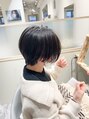黒髪にも似合うハンサムショート。全体を乾かして毛先にアイロンを軽く通してヘアバームをつければ完成です。