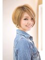 ハイトーンのベージュ系にして柔らかさを、カットでヘビーパートを少し長めににカットしてアシメボブに、顔周りには重さがでるようにして知的な雰囲気を残したこなれ感のある大人のショートスタイルです☆少し癖のある方はコスメストレートがおススメです♪