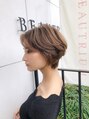 大人の雰囲気を醸し出す前下がりショート。柔らかい毛流れと後頭部の丸みで女性らしさも表現。短すぎない長めの前髪なら、ショート初心者にもオススメです。乾かすだけでまとまるので、スタイリングが苦手な方もぜひ!