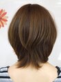 重さをかなり残した長めの前下がりボブです。ボリュームが出やすいようにふんわりレイヤーをいれ部分的にパーマをあてるとこなれ感がでて簡単ですよ~
