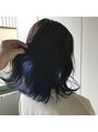 暗めのアッシュカラーにブルーのインナーを◎後ろからもチラッと見えるのがカワイイ!!!