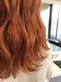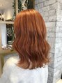 全体を一回ブリーチしてピンクがほんのり入ったオレンジで染めました(^^)♪透明感のあるオレンジカラーをしたい方におすすめです!