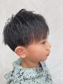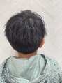 マッシュベースにツーブロックと斜めバングで遊びを入れつつも爽やかで清潔感のあるマッシュスタイルです。子供から大人まで幅広くできるスタイルなので、オススメします◎