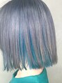ブリーチ2回以上必須カラー☆表面を明るめのシルバー、インナーをアクアブルー☆カットは切りっぱなしボブ☆