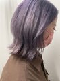 ハイトーンにラベンダーをオン。一度全体ブリーチをしてから色味を入れていきます!モデルさんは今までのブリーチ履歴は5回以上です。ラベンダーがガッツリ入っていますが色落ちはホワイトグレーからホワイトベージュに段階を踏んで色落ちも楽しめます!