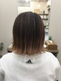 切りっぱなしボブ×バレイヤージュベースが暗いのでプリンも気にならない!ボブなのでスタイリングも楽チンです!スタイリングはオイルがおすすめ!