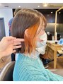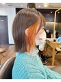 ビビットなオレンジがアクセントのボブスタイルです!ポイントでもブリーチをするとガラッと印象を変えられます。扱いやすいカットをモットーに、お客様の日常が更に楽しく過ごせるよう、お洒落で上質なヘアにいたします。