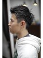 髪質は、まっすぐでたちやすい方に向いています。フロントサイド バックサイドに指1本分ぐらいのツーブロックで、フロント トップ サイドに長短をつけてをつけて動きがでるようにカットしました。