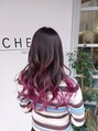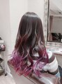 ブリーチを使用しグラデーションのベースを作り、ベースにピンクパープルを使用し、毛先にライトパープルをオン☆(毛先のライトパープルはカラーバター類を使用しております)