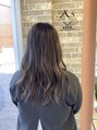 ホイルワークで明るいラインを入れ、全体を赤みを抑えたグレージュカラーにしました。寒色系が好きな方にオススメです。