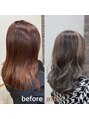 beforeをみていただくと赤みがとても強く残ってます。ハイライトをいれつつ、赤みをとってハイライトが浮き出てくるようなテクニック、カラーチョイス。一気にイメチェンでテンション上がります。イメチェンできるの美容師の真骨頂です^_^お任せください。