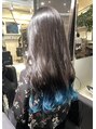 *裾カラーターコイズブルー!毛先ブリーチ水色スカイブルー/ホットペッパービューティー