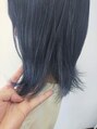 ダークトーンのブルーブラックカラーです☆もともと毛先にグラデーションカラーの履歴がありますので透けて色味がしっかりとわかるので綺麗ですヨ(*^_^*)