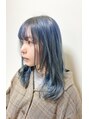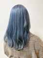 ブリーチしてある所にオンカラー♪淡いスカイブルーに☆顔まわりにレイヤーをいれてオシャレ度UP◎