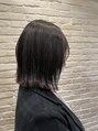 外はねしやすいようにカットし、毛先はぱつっと感がでるようにしスタイリッシュな仕上がりに!お色は透明感のある赤みをを消したグレージュに!