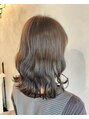 自然で柔らかい印象のグレージュカラーです7Lvの明るさなのでお仕事やバイト先でも出来るカラーです☆ヘアスタイルは肩下のボブスタイルで、そのままでも可愛いですし、波巻きにセットする事で女性らしいクビレのあるスタイリッシュなヘアスタイルです