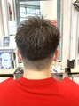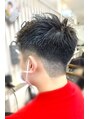 men'sショートジェルセット。はちがはりやすい方は思い切って刈り上げましょう。3mm刈り上げフェードスタイル。刈り上げたくない方はツーブロックでピンパーマをすれば広がりが気にならなくなります。