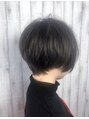 【可愛い】:【カッコイイ】6:4のバランス、旬髪♪前下がりショート!やや高めのウェイトに毛先の厚みを残したカットが今っぽさを感じさせます♪ダークグレーカラーの艶&透明感!丸みのあるバックとシュッとおさまるサイドのバランスが◎