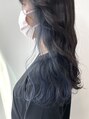 韓国風インナーカラー×ネイビーブルー/イヤリングカラー