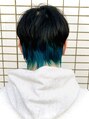 マッシュウルフ××襟足インナーカラー××エメラルドグリーン色/ホットペッパービューティー