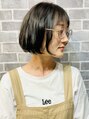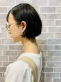 丸メガネの似合うミニボブ。リップラインより少し下目の、スタイルです。裾は首の位置ギリギリでスッキリと、切りっぱなしの毛先で耳掛けにもOK◎ショートスタイルならではの柔らかい印象に。ヘアオイルや、バームを髪全体に馴染ませる簡単スタイリングです。