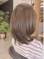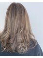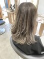 ハイライトはしっかりブリーチで色を抜いて表面にもスジがしっかり出るように入れます。同時にベースをアッシュ系で整えシャンプー後トナーでハイライト部分にベージュを入れました次回はシングルカラーでもハイライトが残っているので立体感が出て楽しめます