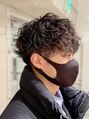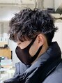 刈り上げ幅広めの前下がりマッシュベース。スパイラルパーマを全体に施しフロントにボリュームがたまるように!おしゃれで色気のある男っぽいスタイルです。