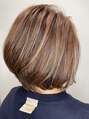 髪色を艶っぽく見せたいのなら断然暖色系のベージュやブラウンがおすすめです。白髪やハイライトの透明感を活かすことで赤褐色に寄りすぎず艶っぽい質感が生まれます。くせっ毛さんにもおすすめのカラーリングです。カット担当はスタイリスト馬場。