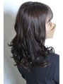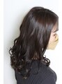 オレンジ、赤みのベースをくすませたアッシュ系カラーです。セミロングの長さをAラインのシルエットになるようにと頭の形にあうよう必要な所を巻いた感じのスタイルです。