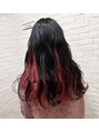 トップは暗めのブルーブラックで艶感をインナーは幅を広めて濃いめのピンクでお染めしました!ブリーチ2回してます!