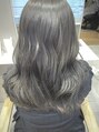 顔周りサイドバングも巻いてラフなカールでセクシーに。シルバー系とグリーンカラーでシックで艶のある3Dカラー。