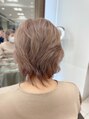 ハイトーンのミディアムショートは遊び心のあるスタイル。ケアブリーチで色を抜いてから、イルミナカラーで淡いベージュブラウンに。白髪が気になる方も、あえて明るくすることで目立ちにくくなります。明るくするのに抵抗がない方はぜひ一度お試しください!