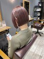 ブリーチ回数1回、大人上品なブラウンよりの柔らかピンク系カラーです!ボブスタイルとの組み合わせとても可愛いです♪