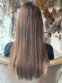 髪のくせは強くないのですが、カラーなどのケミカルダメージで全体的に広がりやすくなってしまっている状態です。根本から中間までは中性、毛先は酸性域で塗り分けて毛先の負担を抑えた薬剤設定にすれば仕上がりもバッチリです