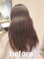 髪質改善トリートメントと毛量調整を行い、毛先を少しチョップカットでカット。カラーは7LVのオリーブ系。